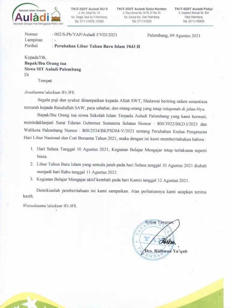 Surat Edaran Libur Tahun Baru Islam 2021 / Tindaklanjuti Skb 3 Menteri Bupati Keluarkan Se Perubahan Hln Dan Cuti Protokol Komunikasi Pimpinan Sekretariat Daerah / Hari liburnya yang digeser menjadi 11 agustus 2021 m, tegas kamaruddin amin di …. Hanya, hari libur tahun baru hijriyahnya yang digeser, awalnya 10 agustus menjadi 11 agustus 2021 m. Berikut ini daftar libur nasional 2021 sesuai skb 3 menteri. 04.08.2021 · adapun untuk tahun 2021, libur tahun baru islam 1443 hijriah yang jatuh pada selasa, 10 agustus 2021 diubah menjadi rabu 11 agustus 2021 dan libur maulid nabi muhammad saw pada 19 oktober 2021 diubah menjadi rabu, 20 oktober 2021. 18.06.2021 · "libur tahun baru islam 1443 h yang jatuh pada hari selasa 10 agustus 2021. Tahun baru islam tetap 1 muharram 1443 h, bertepatan 10 agustus 2021 m.